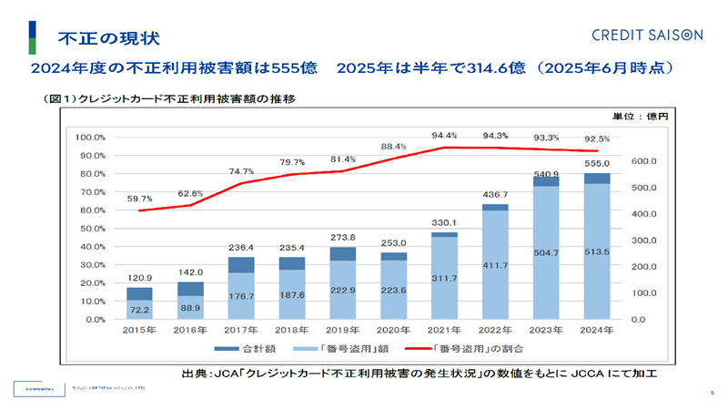 キャッシュレス決済の拡大に伴い不正被害は増加し、日本クレジット協会の発表によると2024年には被害総額555億円に達しっている。さらに2025年4月からは3-Dセキュア必須化、PINバイパスの廃止など制度も大きく変わり、業界全体が新たな対応を迫られている。クレディセゾンでは、2025年9月29日に最新の不正利用トレンドや制度改正、AI不正利用検知モデルによる成果などに関するメディア説明化を開催した。