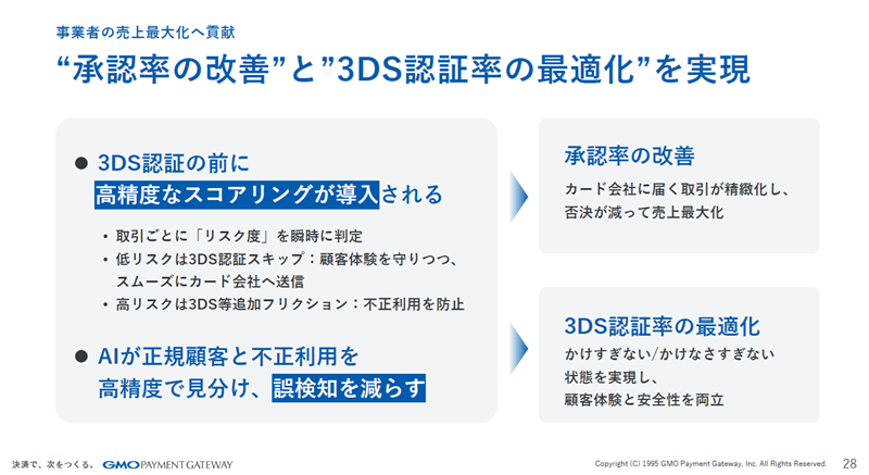 加盟店にとっての課題は、購入前に離脱してしまう「カゴ落ち」の発生やオーソリ承認率の低下だ。決済の利便性を損なわず、不正を防ぐバランスが重要となる。