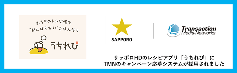 トランザクション・メディア・ネットワークス(TMN)は、サッポロホールディングス(サッポロHD)が運営するアプリサービス「うちれぴ」にTMNの「キャンペーン応募システム」が採用されたと発表した。