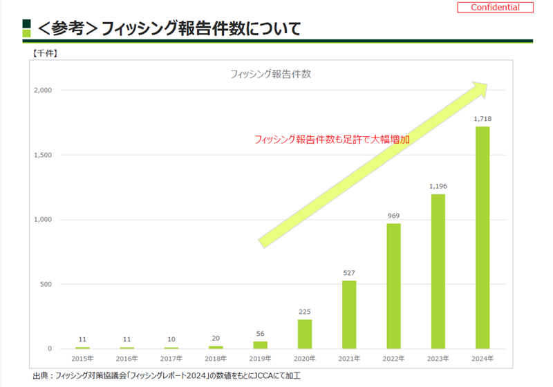 そして今、急増傾向にあるリアルタイムフィッシングが約5%。疑似サイトで入力されたID、パスワードや、ワンタイムパスワードを盗用されて、即座に犯罪につながる手口です。