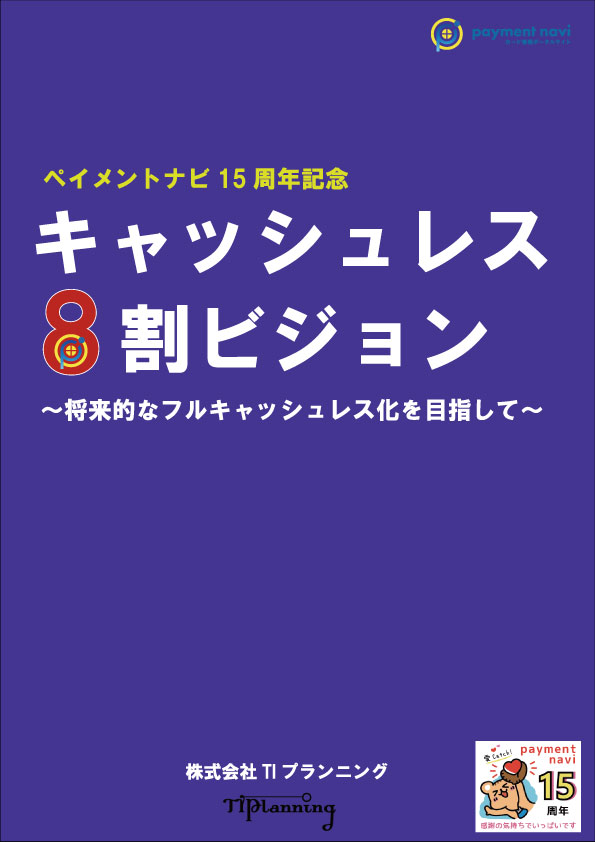 TIプランニングは、カード情報ポータルサイトpaymentnavi(ペイメントナビ)の15周年を記念した記念誌「キャッシュレス8割ビジョン~将来的なフルキャッシュレス化を目指して~」の販売を開始した。