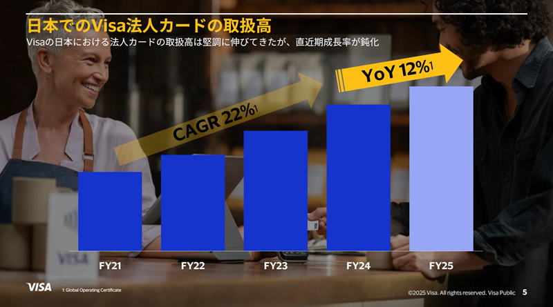 一方で、Visaの日本における法人カードの取扱高は堅調に伸びてきたという。2021年から2025年、過去四年間の平均成長率を見ると、22%の伸びがみられる。伸び率だけで見ると、個人カードよりも比率は高いという。2025年は成長率が12%と減速しているが、「カードの浸透っていうのは飽和状態にあるのかという疑問を正直抱くようなところもあるとは思いますが、我々としては決してそういう風には思っていません・成長の鍵を握るのは地方です」と松田氏は述べる。