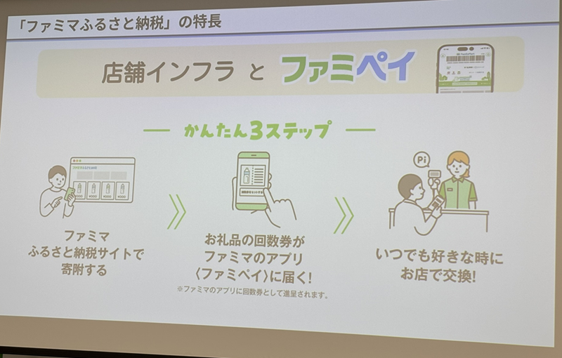 ファミリーマートは、ファミマデジタルワンを通じて、ファミリーマートが提供する商品の製造工場や生産地がある自治体と提携し、「お礼品がすぐに全国の店舗で引換可能」な「ファミマふるさと納税」サービスを、2025年3月から開始している。同社ではふるさと納税の需要が年間で最も高まる12月に「ファミマふるさと納税」の主旨・利便性について紹介する説明会を開催した。当日は、ファミマデジタルワン 執行役員 経営企画管理本部 本部長代行(兼)新規事業開発部長 小笠原 裕明氏がサービスの強みについて紹介した。