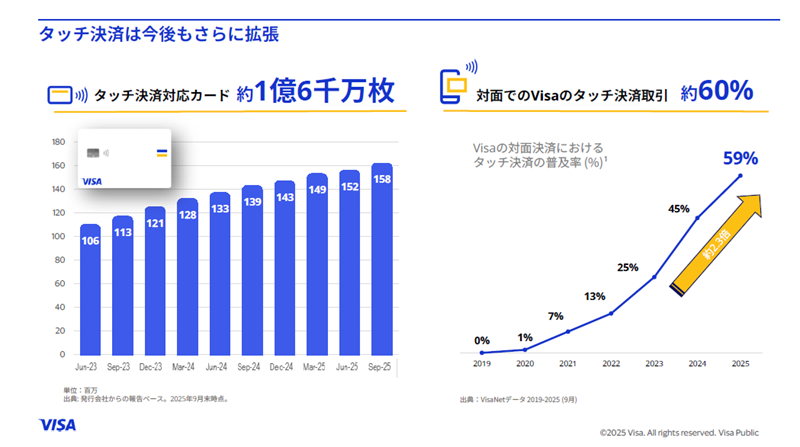 この1年の成果として、タッチ決済が目覚ましい成長を遂げているとした。タッチ決済の採用は急速に進んでおり、普及率は現在60%に達している。「これは2年前のわずか15~20%からの大きな飛躍です」(キトニー氏)。この進展は、カードイシュア(発行会社)が約1億6,000万枚の非接触カードを市場に投入したことに支えられており、日本は世界の非接触決済の標準により近づき、これまで以上に多くの消費者が安全で便利な支払いを利用できるようになったそうだ。