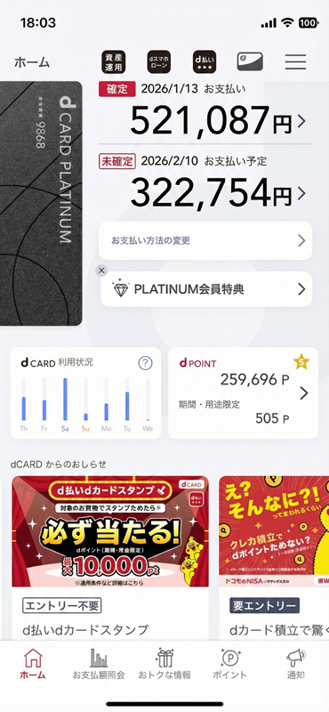 条件にもよりますが、月の電話料金の請求額の20%までポイントで還元する特典が大きな魅力につながっています。電話料金は毎月還元されるサービスであり、そういうものを持っていない銀行系カードと比べても、通信会社のクレジットカードの強みになっています。プラチナカードを設計するときに、何を特徴にするべきか、喧々諤々の議論をやったのですが、ゴールドが10%のdポイントが戻ってくるという特典が、ショップなどのスタッフに聞いても一番セールストークしやすい、ということでしたので、電話料金の還元率にこだわりました。買い物をしていただくという前提条件がありますが、思いのほか認知も高まり、早期に100万人に到達しました。