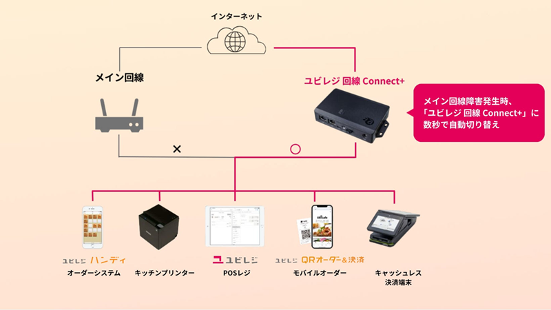 クラウドPOSレジ「ユビレジ」を提供しているユビレジは、店舗のメインとなるインターネット回線に不備や不具合が発生した際、ルーターを介してサブ回線へ自動的に切り替えるオプションサービス「ユビレジ 回線 Connect+(コネクトプラス)」を、2026年1月15日より開始した。