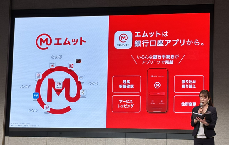 「エムット」はMUFG各社のさまざまなサービスを統合し、“人生にかかわるお金のすべてを「まるっと」サポートする”金融サービスブランドだ。「エムット」では「三菱UFJ銀行アプリ」(インターネットバンキングアプリ)を中心にクレジットカードやスマホ決済などのお金を「つかう」機能、ポイントなどが「たまる」機能、資産運用などのお金を「ふやす」機能、相続などのお金を「つなぐ」機能をシームレスに繋ぎ、各種サービスにワンストップでアクセス可能にすることでユーザーがお金の管理をわかりやすく簡単にできる、シンプルかつ直感的なサービスを目指している。
