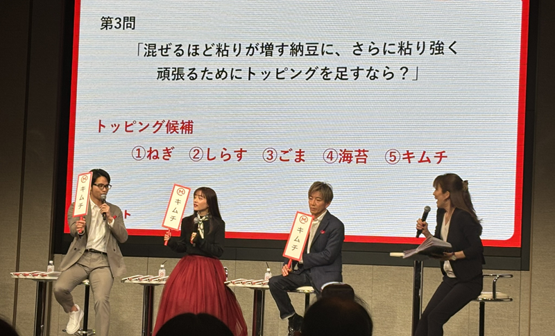 発表会の 「トッピング」をテーマにした企画では、用意されたお題に対し、三兄弟の答えが一致するかどうかに挑戦した。CM内でも描かれている三兄弟の関係性さながらに、息の合った掛け合いを見せる場面や、時折意見が分かれる場面もあり、会場からは笑いと拍手が起こった。
