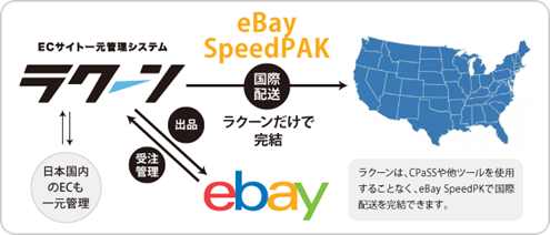 同連携により、ラクーンを利用するeBayセラーは、出品から受注管理、そしてeBay SpeedPAKによる国際配送までを、単一ツール内で完結させることが可能だという。また、これまでeBay SpeedPAK利用時に必要だったツール「CPaSS」への登録やほか配送サービスへの併用が不要となり、オペレーションの効率化を実現するそうだ。