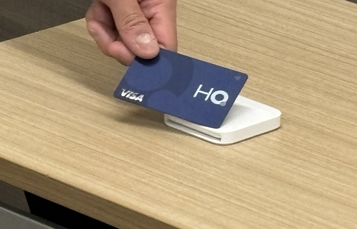 新たにリリースした福利厚生サービス「食事補助HQ」は、クレジットカード1枚で街中が社食になるのが特徴だという。