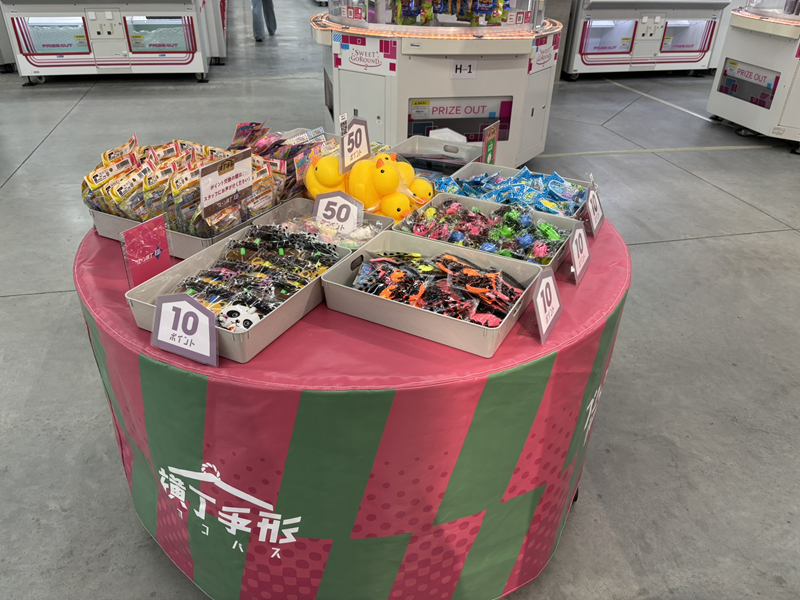 貯まったポイントは、最低10ポイントからポイント交換用景品と交換可能だ。景品は雑貨やおもちゃ、お菓子、ギフトカードなどを用意した。同店舗はコーナン船橋花輪インター店と隣接しており、家族連れにも応えるラインナップとなっている。また、ポイントは有効期間内にポイント付与またはポイント交換があれば、そこからさらに180日間延長される。