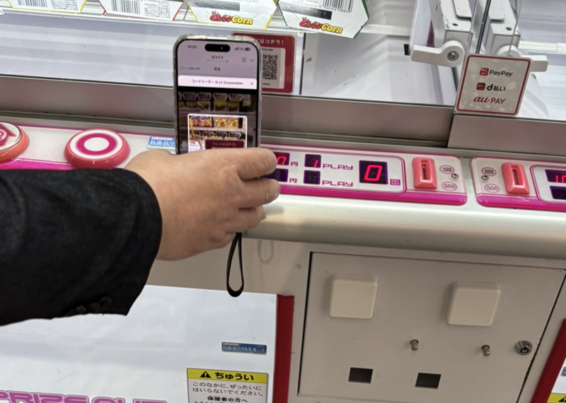 利用者がLINEを利用していれば、各クレーンゲームに貼付した二次元バーコードをカメラで読み取ると、すぐにLINEミニアプリが利用可能だ。小島氏は「LINEを採用した理由は老若男女とわず利用するサービスである点と、ミニアプリは会員登録やアプリのインストールなしですぐに使えるからです」と説明する。