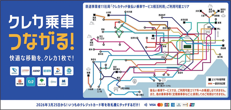 関東の鉄道事業者11 社局の路線を対象とした、クレジットカード等のタッチ決済による後払い乗車サービスの相互利用を開始