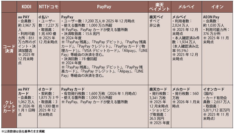 また、大手クレジットカード会社では、利得性で勝負するケースも目立つ。三井住友カードのナンバーレスカードでは、対象のコンビニ・飲食店で、スマホのタッチ決済またはモバイルオーダーでVポイントが最大8%還元される取り組みを実施。三菱UFJニコスの三菱UFJカードでも対象店舗で利用金額の7%相当のグローバルポイントを還元している。また、三菱UFJ銀行口座設定とアプリエントリーにより、対象店舗などで最大20%のポイント還元(グローバルポイント)を行っている。JCBでも会員向けポイントサービス「Oki Dokiポイント」を刷新し、「J-POINT」を2026年1月から開始した。JCBオリジナルシリーズ会員限定サービスJ-POINTパートナーでは日常的に利用される飲食店など80店舗以上で最大10%還元を実現した。