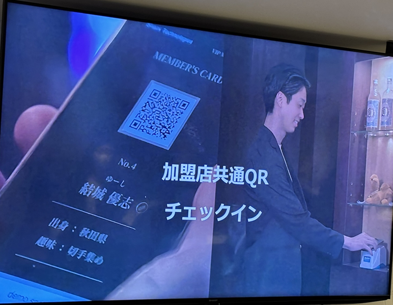 店内やママの雰囲気を動画で見える化するとともに、加盟店共通のQRチェックインを用意。