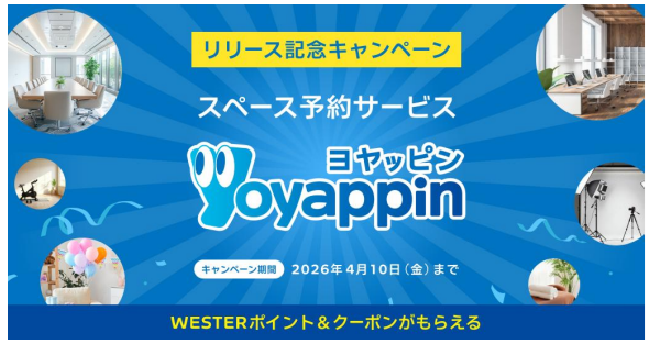 JR西日本とスペイシーは、新スペース・体験予約サービス「Yoyappin(ヨヤッピン)」を 2026年3月26日より開始した。サービスリリースを記念して、WESTER ポイントやクーポンが手にできるキャンペーンを開催中だ。