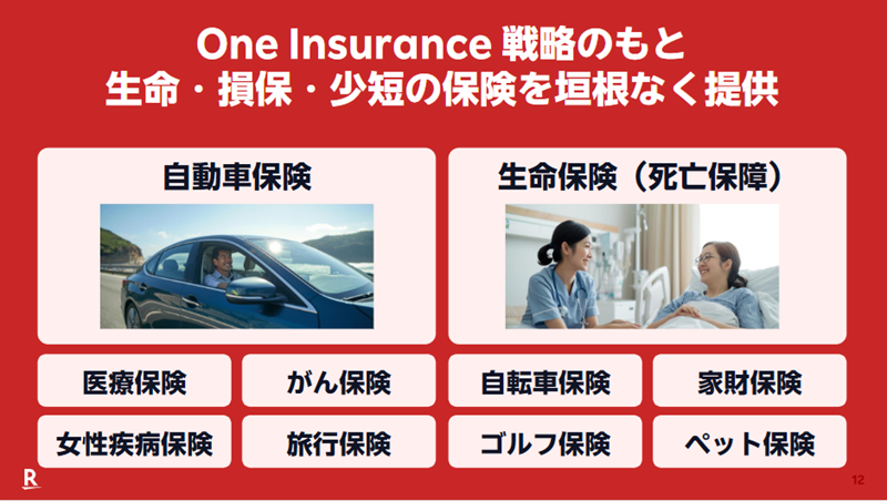 楽天保険グループは、“保険を「安心、お得、簡単。」に。”をモットーにしている。同社ではOne Insurance戦略のもと生命・損保・少短の保険を垣根なく提供している。