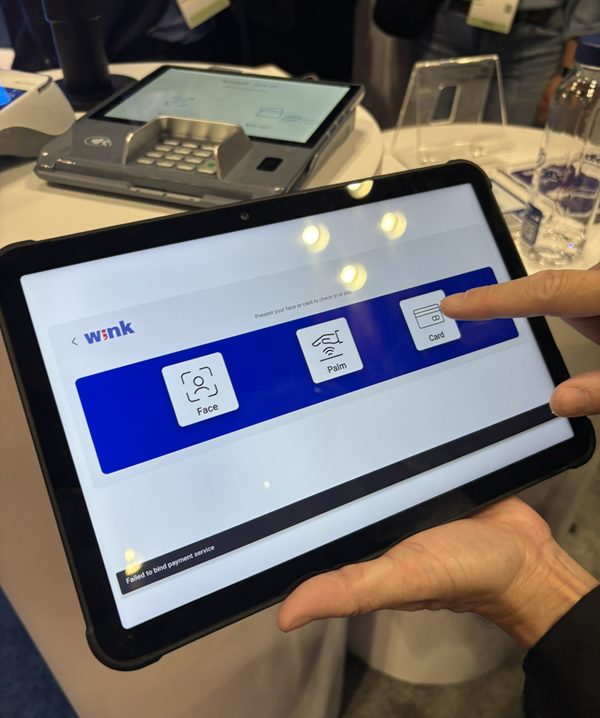 PAX Technologyは、米国・ニューヨークで2026年1月に開催された流通向け展示会「NRF 2026:Retail’s Big Show」において、新端末の「M11」を活用した生体認証のデモを行った。同社は2025年12月に生体認証プラットフォームを提供するWink Inc.と提携している。