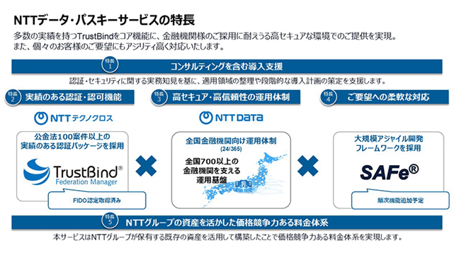 同サービスは、国際標準規格FIDO2に準拠したパスキー認証により、パスワードレス認証を実現するもの。導入領域の選定から移行設計までを支援するコンサルティングに加え、金融機関向けに24時間365日体制での運用を提供する。さらに、全国700以上の金融機関におけるミッションクリティカルなシステム運用で培った高度な運用基盤と管理・監査の仕組みを活用し、同サービスについても同水準の運用体制を確保するという。これらにより、技術提供にとどまらず、実運用を前提としたパスワードレス認証基盤を提供する。