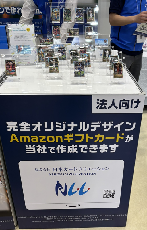 同展示会では、オリジナルデザインでつくれるAmazonギフトカードを紹介。同社ではAmazonギフトカードの製造を行っていたが、今後は自社でオリジナルAmazonギフトカード制作・販売を行っていくという。同事業は1円から企業オリジナルデザインのAmazonギフトカードを製造することが可能だ。今後はオンラインで気軽に利用できるAmazonギフトカードがラインナップに加わることで、さらにカードの受注が伸びると期待している。