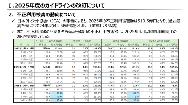 ここからは、不正利用被害の動向と、ガイドライン附属文書の改訂についてご説明いたします。
